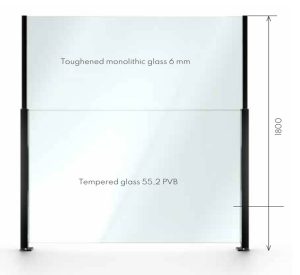 Достатъчен е само един жест, за да се задейства вграденият механизъм. Не е необходим силен натиск или ръчно повдигане на тежки стъкла. Конструкцията е лека, но устойчива. Носещите колонки са от алуминиеви профили, а същинската преграда – ламинирано закалено стъкло.