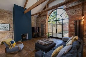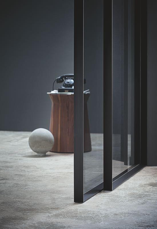 Прозорците и вратите, просечени от така характерните черни решетъчни рамки, придават специфичен чар и усещане за модерна грация, а естествената светлина се влива в пространствата през тънки стъклени панели.